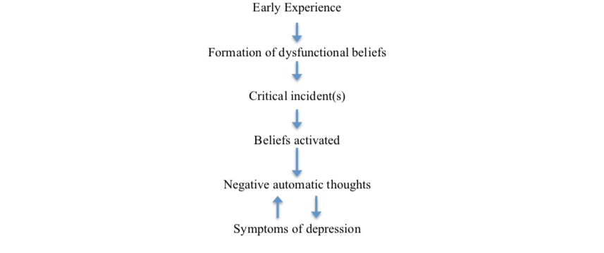 Therefore, if a person has an experience of a relationship failure in their life, they may form a belief that they are no good at sustaining relationships. Few days, weeks, months, or years down the line, when they once again sense that a relationship is at risk, there is a possibility that the belief ‘I am no good at relationships’, will be activated. This will trigger a series of negative thoughts, one or more symptoms of depression like lack of energy, motivation, concentration, loss of appetite, difficulty in sleeping or stress may manifest themselves, further feeding the negative automatic thoughts.